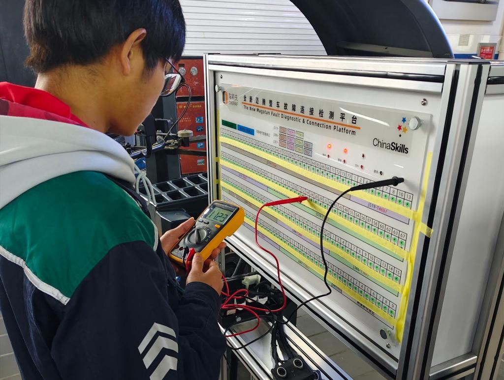 本次考核对接职业院校技能大赛标准,聚焦专业核心技能点。学生考核内容为“起动机不运转故障诊断与排除”,重点考查学生对电路分析、故障排查及工具使用的熟练程度。教师组则围绕“发动机运行异常故障诊断”进行考核,旨在检验教师对复杂故障的综合分析与现场解决能力。