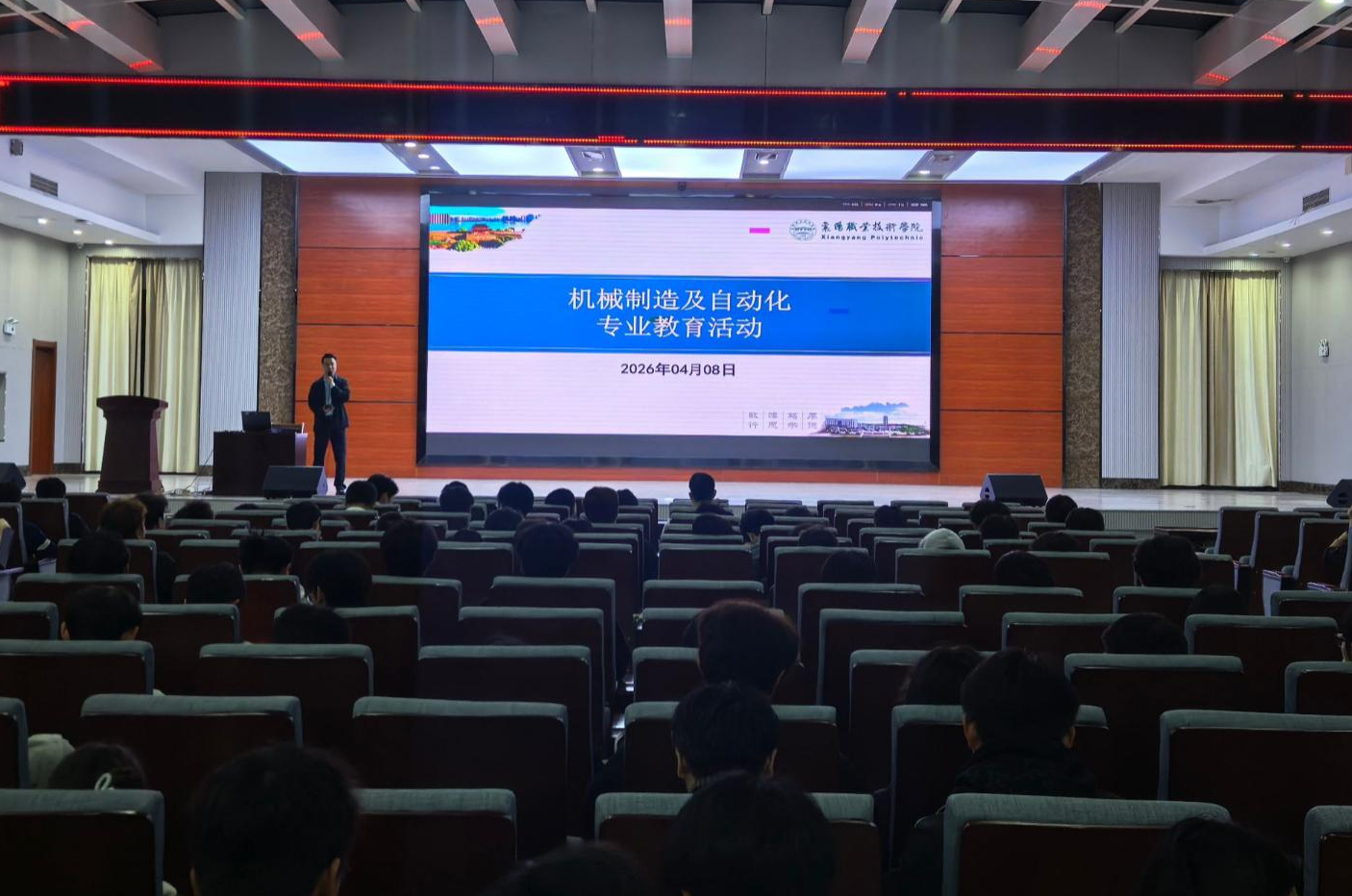 4月8日晚,汽车工程学院(智能制造学院)机械制造及自动化专业在智造工业中心报告厅开展在校生专业教育活动。专业研究室主任陈凯主讲,来自该专业一、二年级共计700多名学生,以及近三年新入校教师参加活动。
