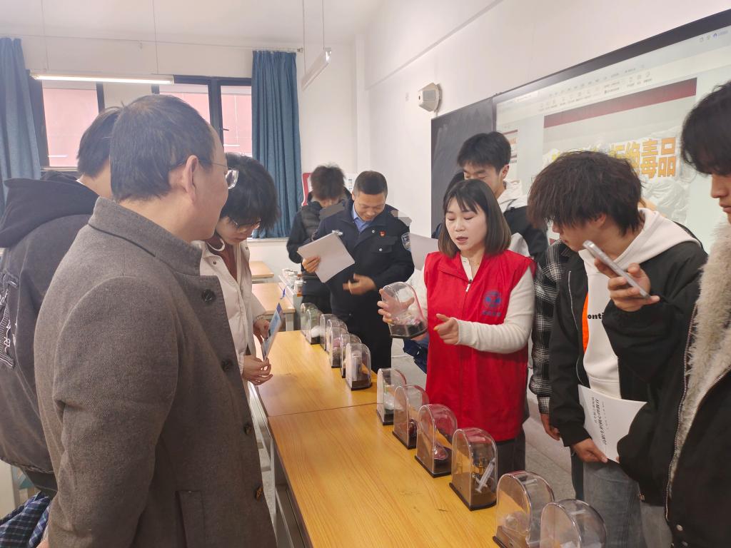 为增强讲解的直观性和实效性,李警官现场展示了各类毒品仿真模具,逐一讲解不同毒品的外观特征、伪装形式及识别要点,引导同学们近距离观察、细致区分,手把手传授辨别技巧,从源头提升防范能力。