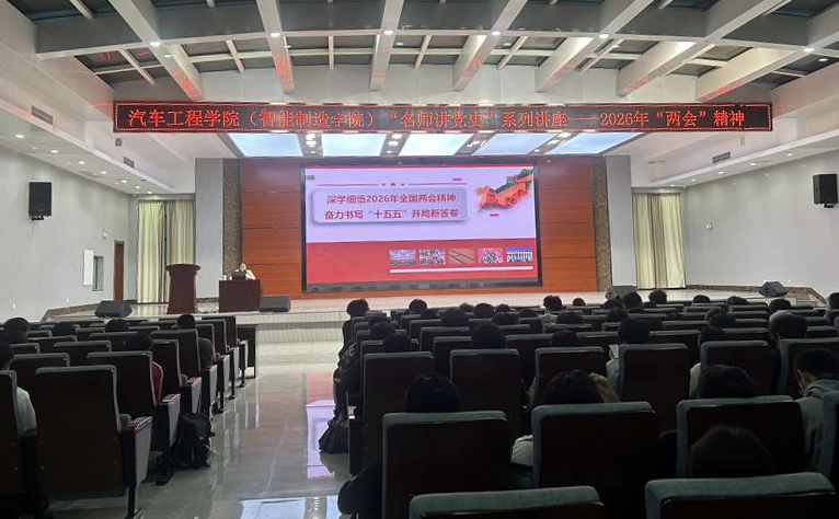 4月14日晚,汽车工程学院(智能制造学院)在图书馆报告厅举办2026年全国两会精神专题学习讲座。马克思主义学院吴玫老师应邀担任主讲。