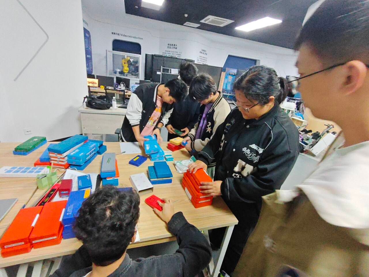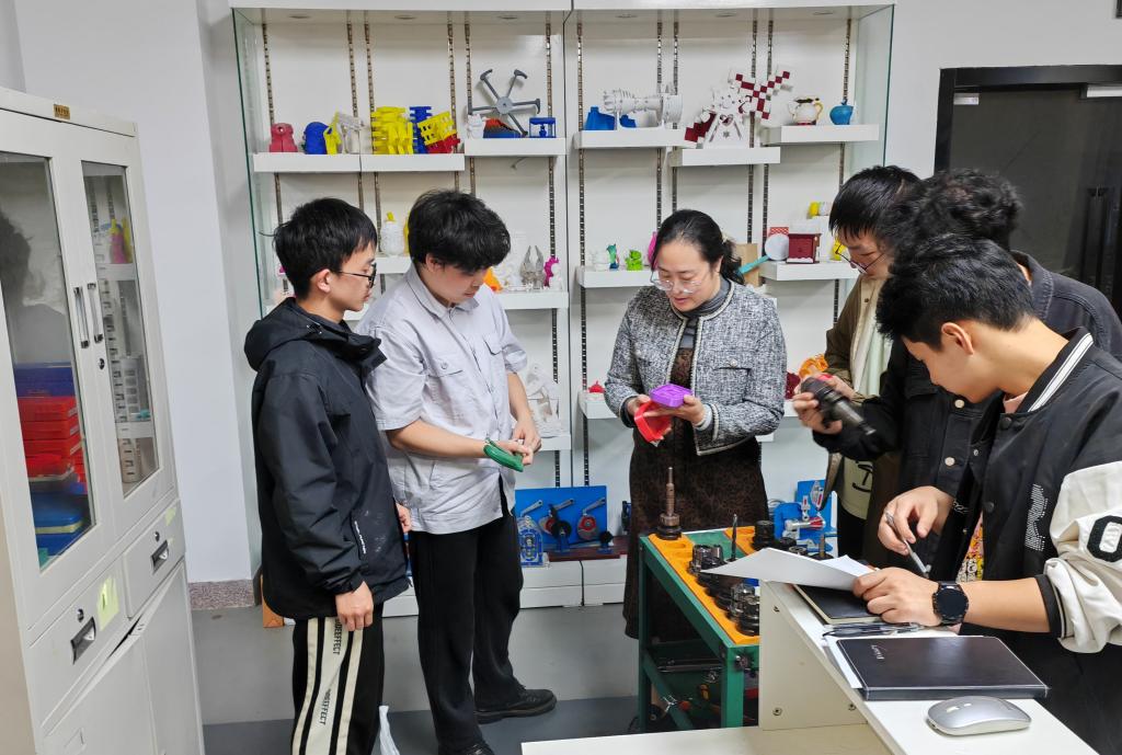 在党支部副书记孟灵的带领下,预备党员们对实训设备进行维护保养,将游标卡尺、量规等精密测量工具逐一清点、擦拭、涂油并分类归位;同时对实训室内种类繁多的3D打印材料,如PLA、ABS线材等,按照规格和用途进行系统的分类整理。